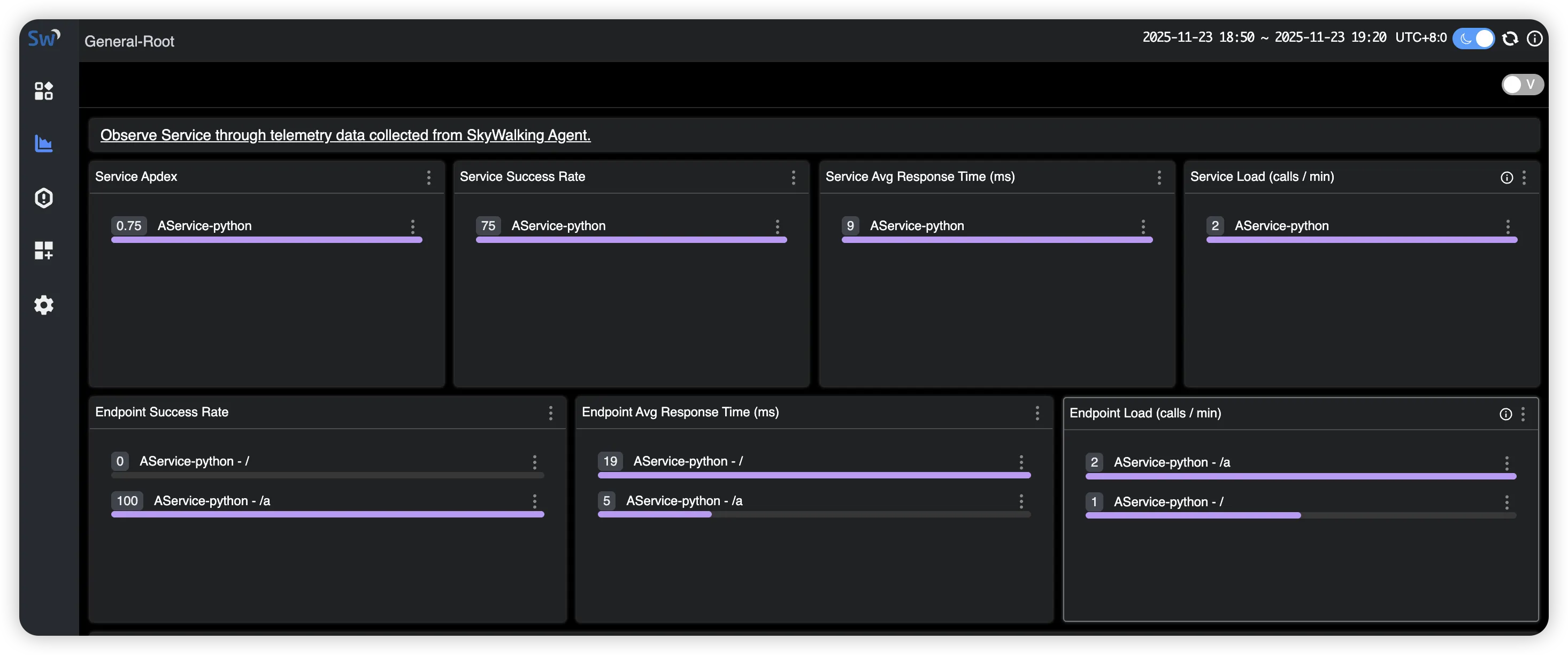 上一篇我们已经安装好了 Skywalking 和 Easysearch,这次我们来写个简单的 Python 服务,并把它的服务调用信息发送给 Skywalking,通过 Skywalking 的 Web UI 进行展示。