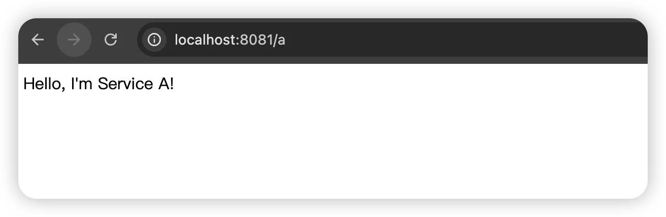 我们编写一个简单的 Flask 服务程序,只要访问 localhost:8081/a 就会返回 “Hello, I’m Service A!” 信息。