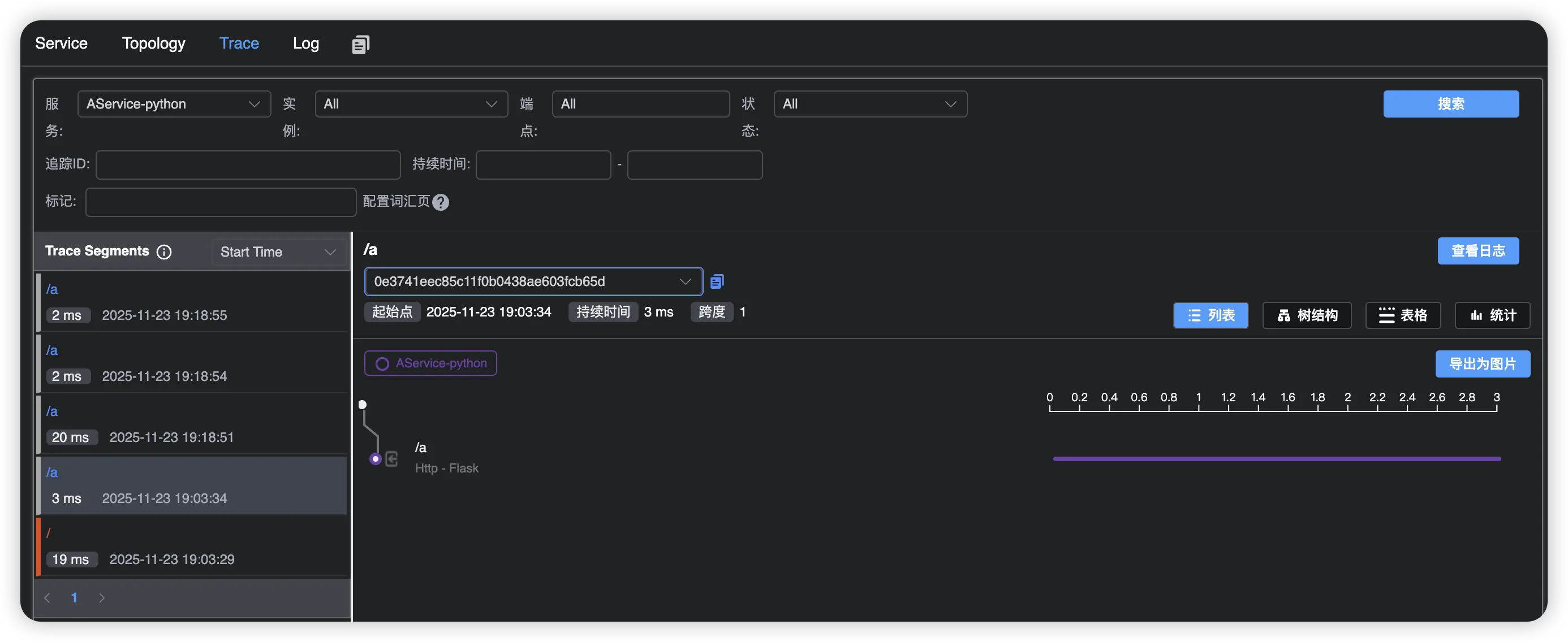 可以看到服务 A 的调用信息都已经被记录到 Skywalking 中了。
