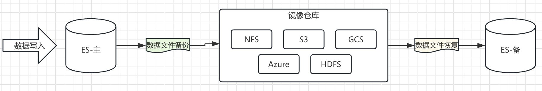 Gateway | 作为中间件或插件,将数据流式写入到对象存储/分布式存储,并支持恢复 | 1. 对应用程序和 es 都无感透明,部署简单; 2. 使用灵活,可配置度高; 3. 高性能同步工具。 | 暂无 | 异地容灾、实时热备,业务连续性要求高的场景 |