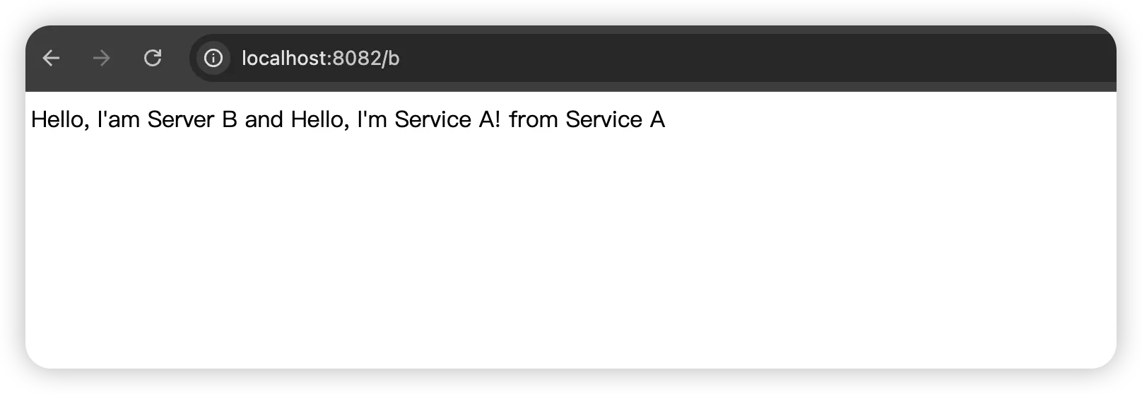 return f"Hello, I'am Server B and {response.text} from Service A'